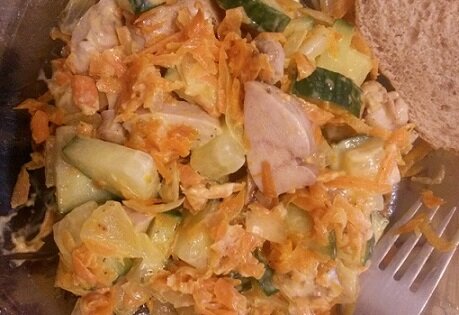 Рыбу я ем, потому что она полезная, а вот молоку люблю, потому что очень вкусная и готовится за 5 минут. Ко всему прочему это низкокалорийный продукт (90-100ккал на 100гр), богатый белком (16гр), что с возрастом особенно важно, для поддержания мышечной массы (она естественным образом уменьшается). Причем белок в составе молок особый, низкомолекулярный (протамин – полезен при диабете). У молоки низкая жирность, но эти 3гр богаты полиненасыщенными жирными кислотами. В 100гр молоки содержится 90% суточной нормы витамина В12, являющегося профилактикой анемии, возрастных когнитивных расстройств, да и вообще очень полезен для ЦНС. Раньше я ее просто жарила, а некоторое время назад открыла для себя новый способ – ее можно просто отварить, надо то всего 5 минут. А дальше делай с ней, что хочешь: хоть салаты, хоть жульены, хоть омлеты, а можно и просто взбить для получения паштетов. Сегодня я отварила себе 300гр и буду готовить новые блюда. Начинаю с салата. Вкуснейший салат с молокой, зажар