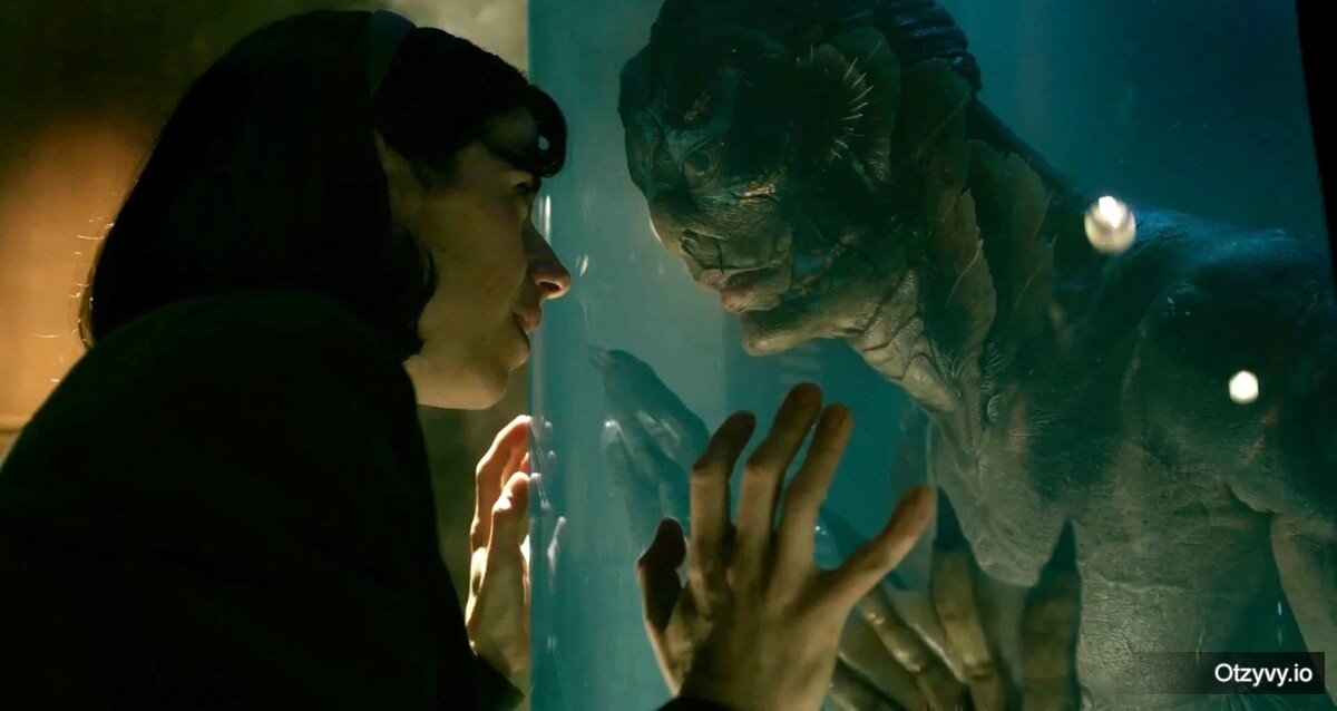 Фильм Форма воды (2017) Действие происходит в начале 1960-х. Немая Элиза работает уборщицей в секретной военной лаборатории в Балтиморе, куда привозят объект для изучения – гуманоида-амфибию. Женщина начинает наблюдать за существом, и вскоре между ними возникает связь… Прежде всего это красивая, почти сказочная история любви, перевернутый вверх ногами вариант “Красавицы и Чудовища”. Красавица здесь – совсем нетипичная красотка, а скорее серая мышка, уборщица, на которую почти никто не обращает внимания, тем более что она лишена возможности общаться вербально. Зато у нее золотое сердце, и трусливой ее назвать тоже нельзя. Она могла бы даже показаться слишком идеализированной, если бы не первоклассная игра Салли Хокинс. А чудовище - Человек-амфибия, не может снять свой костюм, одновременно хищник, безжалостный к обидчикам, и нежный влюбленный, обладающий особыми талантами. Отношения между ними, которые начинаются с простого общения под музыку, быстро переходят на неожиданны