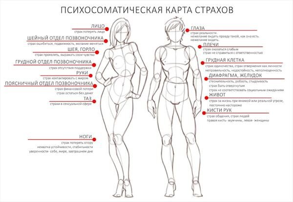 - Грудная клетка. В этой зоне на карте страхов отражается страх человека перед одиночеством, человек боится быть отверженным как личность.