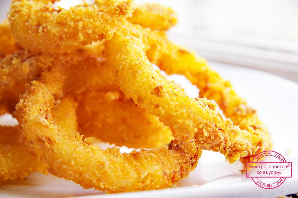 После просмотра любимых фильмов или передач, каждый человек хотя бы раз в жизни задумывался о приготовлении этой вкуснейшей закуски в домашних условиях. И с виду такое простое блюдо получалось далеко не у всех. Не зная секретов, невозможно добиться желаемого хруста и насыщенного вкуса. На самом деле все очень просто. Для приготовления золотых луковых колец нам понадобится лук, нарезанный кольцами по 5-7 мм и кляр. Откроем первую тайну. Дополнительным ингредиентом, который пойдет в кляр, будет классическое, растворимое картофельное пюре. Понадобится всего пара столовых ложек, не больше. Желательно просеять его через сито, чтобы не испортить кляр дополнительными специями или сухарями. Пришло время второй тайны, под названием японские панировочные хлопья. Даже если вы слышите о них впервые, не спешите переживать, что вы нигде их не найдете. Они лежат в супермаркете на одной полке с привычной панировкой или среди продуктов для приготовления роллов. Интересный факт, японские панировочные хл