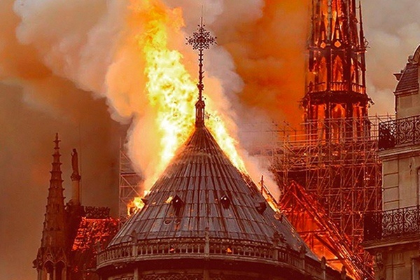 Огонь уже уничтожил часы и крышу. Пожар возник из-за рукожопов строителей, которые чинили крышу. Один из старейших и красивейших готических соборов мира загорелся сегодня в последствии реконструкции. По неосторожности возникло возгорание, которое практически моментально перенеслось на несущие конструкции с чердака. Уже обрушились часы и башня. Похоже, что сегодня от места паломничества в Париже останутся лишь руины. Около часа понадобилось пожарным, чтобы приступить к тушению Нотр-Дама На место пожара прибыл Макрон, ранее президент сказал, что ему больно смотреть, как горит частичка каждого из французов.