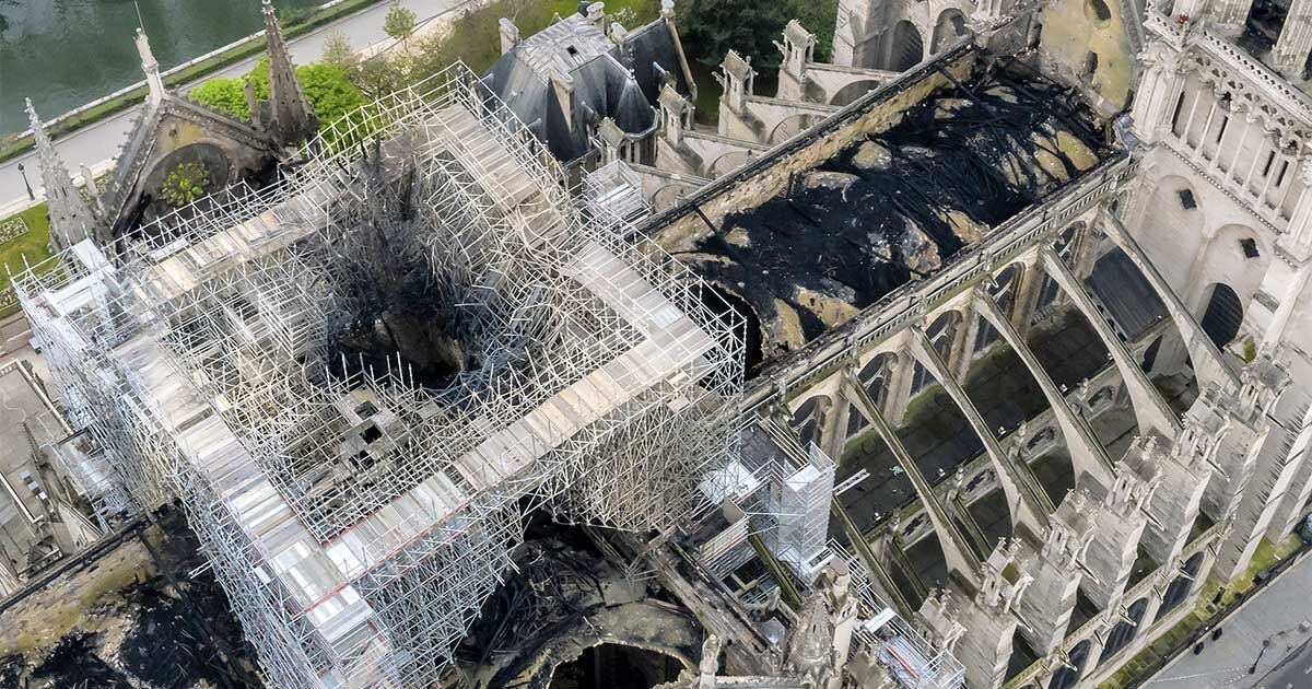 Прошедшей ночью кровлю и шпиль Нотр-Дама уничтожил огонь. Что осталось от здания собора Парижской Богоматери, смотрите по ссылке https://gigarama.ru/notredame/