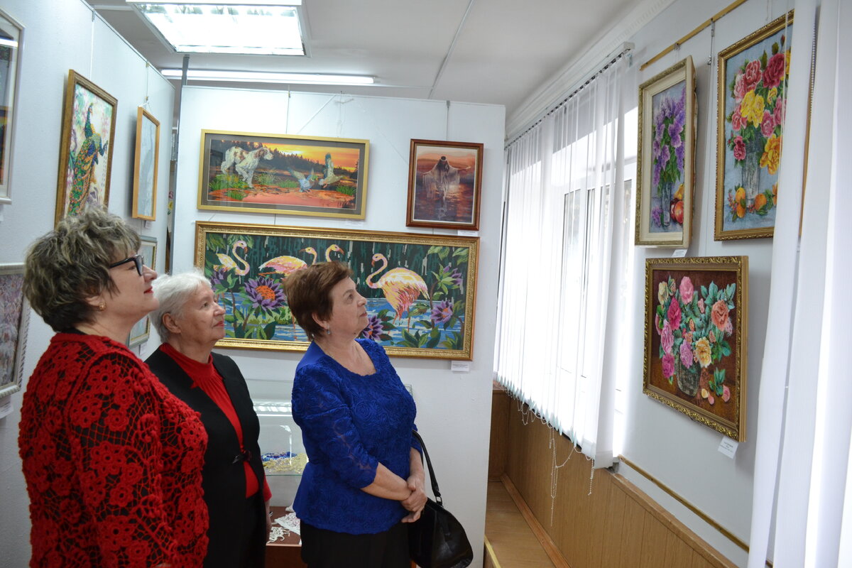 11 апреля в музейно-выставочном зале НГГТИ открылась выставка картин «Чудесной нити волшебство». Она проходит в апреле с 2006 года. – В старину вышивка была не только предметом украшения, но и своеобразным оберегом, – сказала на открытии заведующая музейно-выставочным залом НГГТИ Людмила Кущева. – В каждый рисунок закладывался какой-то скрытый смысл. И сейчас наши женщины все равно любят рукодельничать и украшать свои дома. Свои работы на выставке представили жительницы Невинномысска, Новой Деревни, села Ивановского, Кочубеевского, студентки и сотрудники института. Картины, выполнены в различных техниках: крестом, гладью, стразами, бисером, лентами. Среди экспонатов Людмила Кущева отметила работы Аллы Григорьевой. Мастерица не только вышивает, но и сама рисует схему будущих картин. Также интересны работы, выставленные Татьяной Кузовковой. Она представила работы своей матери Нины. В годы войны у женщины не было подходящих материалов. Все приходилось выполнять из подручных средств. Вы