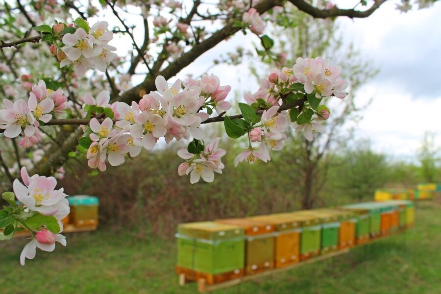 В каждой разноцветной коробочке (улье) живет одна пчелиная семья во главе с маткой. Здесь своя иерархия, всё серьезно. Пчелы большие труженики, они сами ищут себе еду, постоянно работают, и даже совместно нападают на врагов, если потребуется. В одном улье сейчас в начале сезона находится до 30 тысяч пчел, а летом их численность увеличивается в 2 раза. Потому что каждый день пчелиная матка откладывает до 2000 яиц! Поэтому пчелы так быстро размножаются.