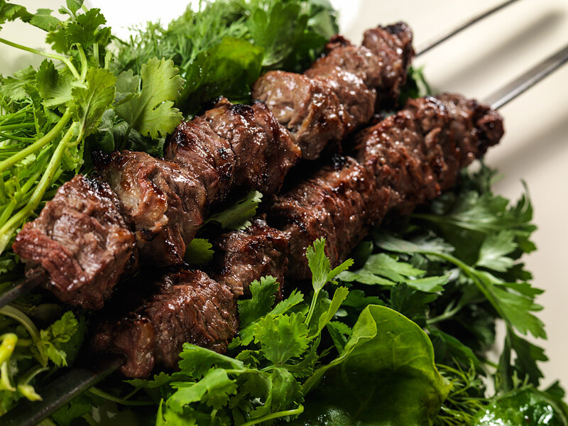 Здравствуйте! Сегодня будем готовить вкусный шашлык из говядины. Вашему вниманию постараюсь подробно рассказать секреты, позволяющие приготовить сочное мясо, благодаря маринаду. Чтобы приготовить вкусный шашлык, рекомендуется покупать мясо, которое попало на прилавок, не более чем, через три часа после убоя животного. Понятно дело, что столь свежий кусок мяса найти будет проблемно… Поэтому, старайтесь выбирать мясо свежее, именно в первый день после убоя. Можно узнать это у продавца на рынке, или определить по внешнему виду. Лучше всего, покупать мясо у одного продавца, чтобы быть уверенным в качестве продукта. Ингредиенты: -Говяжье филе -Соль морская -Гранатовый соус(сироп) продаются в специализированных армянских магазинах (ошарак) -Растительное масло -Чеснок -Перец чили (свежий) -Черный мол. перец. Мясо режем на средние куски,попутно удаляя жилки,прослойки. Солим,перчим по вкусу, с каждой стороны. Перемешиваем,попутно разминая куски руками,накрываем пищевой пленкой и в холод
