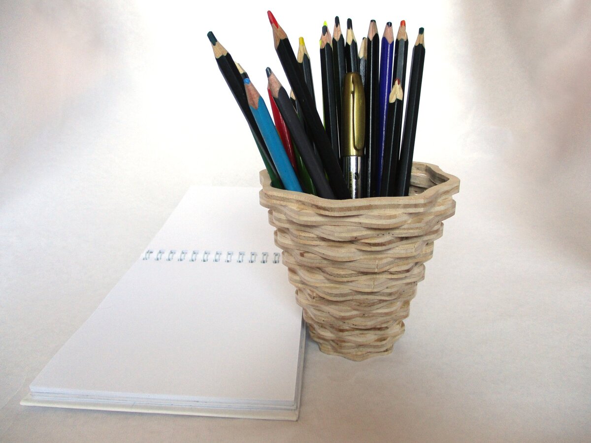 Продолжаю рассказ о декоративных корзинках, сделанных на лобзиковом станке. Начинал я эту тему в статье: Подарки из дерева своими руками. В этой же публикации речь пойдет о такой вот корзинке: Обычно подобные корзинки делаются так - на плоской заготовке размечается ряд концентрических колец фигурной формы. Это немного похоже на мишень. Затем эти кольца выпиливаются и склеиваются от меньшего к большему с небольшим поворотом каждого следующего кольца. За счет фигурной формы, кольца при повороте уже не вставляются друг в друга. При таком подходе получаются широкие декоративные корзинки, а вот для высоких корзинок нужно либо увеличивать высоту материала, либо увеличивать число колец. Выше пример корзинки, которая сделана из материала толщиной 20 мм. Общая высота такой корзинки получилась 100 мм. И при толщине кольца в 5 мм его высота в 20 мм. Эта пропорция далеко не всегда смотрится хорошо. Теперь про увеличение количества колец. Если начинать с донышка диаметром, например 50 мм, при тол