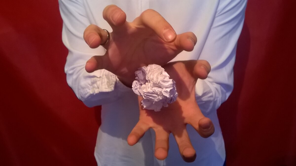Предметы можно заставить парить в воздухе! Без видимых причин! Бумага взлетела и парит. Проверьте сами. Показ фокуса Скомканный лист бумаги без труда парит в руках. Этот простой и захватывающий может повторить каждый. А секрет я расскажу дальше. Подготовка к фокусу Для фокуса понадобиться простая ручка и лист бумаги. Его нужно заранее смять, чтоб эффектно показать фокус и не раскрыть секрет. Показ фокуса Перед показом фокуса берём ручку и убираем её в руку так, как показано на фото. Пряча ручку, показываем зрителям лист бумаги. Мнём бумагу в комок. В это время аккуратно перемещаем ручку в центр листа. Продолжаем мять листок. Сделав комок из бумаги, помешаем ручку между руками. Она должна торчать из бумаги. Иначе фокус не получится. Держим бумагу за счёт ручки и убираем руки. Ни в коем случае не показываем ручку. В этом заключается секрет фокуса. Ставьте лайк и подписывайтесь на канал, если хотите видеть в ленте фокусы и их секреты.