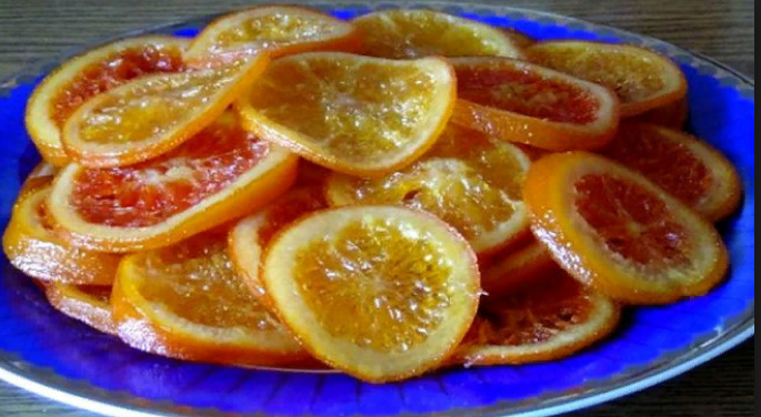О пользе лимонов или апельсинов говорить не стоит, ведь витаминами они богаты и это знает каждый. А вот о том, что это может быть очень вкусным лакомством я скажу, и поделюсь с вами рецептом его приготовления. Советую брать таким образом 1 красный апельсин два обычный и 2 лимона. Получается разнообразие цветов и выглядит намного презентабельнее. Теперь порежем их на кружочки не слишком тонко, чтобы не разваливались. Заливаем их кипятком и ставим вариться около 2 минут, таким образом мы избавляемся от горечи. Затем вынимаем и просушиваем, в кастрюльку засыпаем сахар и воду, доводим до кипения и помешиваем до полного растворения. Опускаем туда наши цитрусовые и ставим огонь на минимум. Таким образом варим 1,5 часа, периодически посматривайте, иногда нужно будет переворачивать их,. чтоб не пригорели. Совет! берите глубокую сковороду, вместо кастрюли. После этого застелите противень бумагой и выложите готовые кружочки, осталось лишь подсушить их в духовке 20 минут при 100 гр.