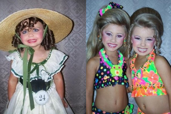 Среди этого не только три слоя штукатурки на лице; накладные локоны, ногти, ресницы, а иногда и зубы! Некоторые мамашки повернутые на конкурсах (по другому их не назовешь) заставляют своих детей загорать в солярии, придерживаться жесткой диеты, наряжают их в откровенные наряды. Одна из них даже колола свой дочери ботокс! Мне не верится, что такие родительницы желают своему чаду только лучшего. На мой взгляд - это реализация через своего ребенка. Есть ли у так