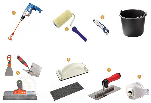 Для проведения работ по шпаклеванию гипсокартонных листов своими руками понадобится набор определённых инструментов и материалов.