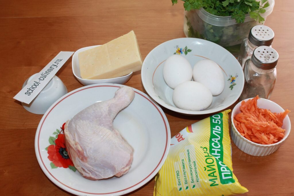 Салат бунито украсит праздничный стол и вызовет одобрение гостей. В нем гармонично сочетаются куриное мясо, корейская морковь, вареные яйца и сыр. Выкладывается кушанье слоями, заправляется майонезом. Приверженцы правильной еды могут сделать домашний соус и использовать его при формировании салатика. В итоге получается нарядно, эффектно и очень нежно. Блюдо декорируют по своему вкусу, украшая верх цветами из яиц или веточками петрушки, укропа, базилика. Рецепт 1: Салат Бунито с корейской морковкой Ингредиенты: Приготовление Курицу (грудку, голень, бедро) моем, снимаем кожу с кусочка и опускаем его в кипящую воду. Варим 30 минут до готовности. Появившуюся пену снимаем. Когда мясо сварится, перекладываем его на тарелку и охлаждаем. Куриные яйца отвариваем вкрутую, охлаждаем под проточной водой и очищаем. Корейскую морковь используем домашнего приготовления или покупаем в магазине, чтобы сэкономить время. Твердый сыр натираем на мелкой терке. Яйца разделяем на белки и желтки. Отдельно н