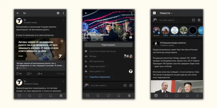 «ВКонтакте» превратила получение тёмной темы для Android в мини-игру. Теперь пользователи везде пишут «тёмная тема» Рассказываем, как включить скрытую функцию и где кодовая фраза бесполезна (например, на TJ). В середине апреля «ВКонтакте» без официального анонса добавила в приложения на Android тёмную тему, которая ещё с осени 2018 года есть на iOS. Но получить скрытую функцию можно только необычным способом: необходимо с телефона написать «тёмная тема» в комментарии к записям друзей и сообществ. Из-за этого получение ночного режима превратилось в флешмоб с тысячами записей по всей соцсети. TJ рассказывает, как активировать функцию и где кодовое слово не сработает. Как включить тёмную тему на Android: Поначалу в соцсетях ходили слухи, что писать фразу «тёмная тема» нужно исключительно в официальном сообществе приложения «ВКонтакте» для Andoid. Как результат — под одной из записей группы оставили более 80 тысяч комментариев. Во «ВКонтакте» рассказали TJ, что за первые сутки функцию