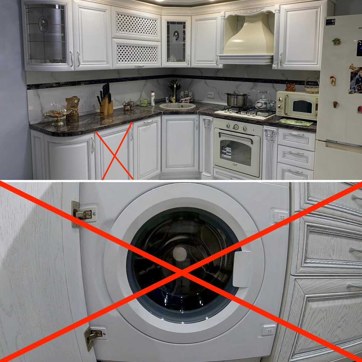 Знаете, как одним неверным решением меньше, чем за год испортить кухонный гарнитур дороже полумиллиона рублей? Легко Примерно год назад мы делали ремонт на кухне. К вопросу подошли с расстановкой и тщательно: заказали не только ремонтные работы, но и специальный проект у дизайнера, чтобы всё было действительно красиво и современно. Среди всего прочего, в проекте была предусмотрена встроенная стиральная машина. И вот это-то и стало фатальной ошибкой! Когда эта машинка стирает, весь гарнитур буквально ходит ходуном. Дребезжат вилки, ножи и ложки, звенит стеклянная посуда и кастрюли, но хуже всего – то, что гарнитур просто-напросто начал разваливаться, поскольку кухонная мебель не рассчитана на такие нагрузки. К счастью, стиральная машина находится достаточно далеко от газовой плиты, иначе последствия могли бы быть ещё плачевнее. Итог этой истории таков: мы приняли решение переносить стиральную машинку из кухни куда-нибудь подальше – выбираем между санузлом и кладовкой. Гарнитур прид