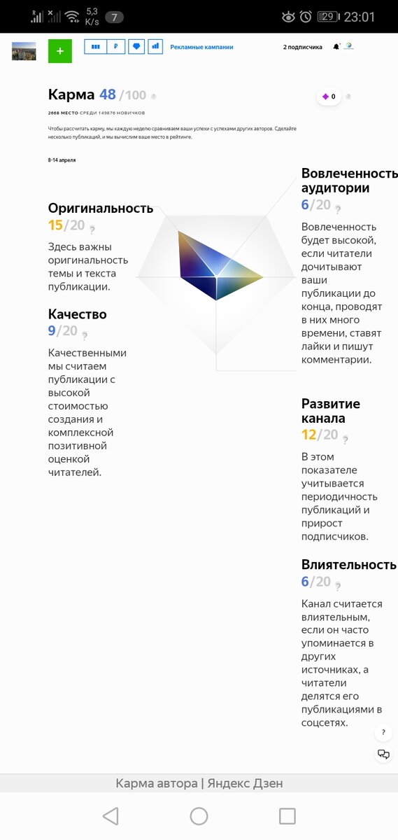 Всем привет, начинающие и мастера пера и клавиатуры. Не смог раньше зайти в Дзен, много работы и загулял на выходные. И о чудо, у моего канала появилась Карма, я думал она появится после 100 прочтенийпрочтения, но видно не правильно разобрался или с чем то перепутал. Дзен присвоил мне рейтинг : новичок 2668 из 150 000!!! авторов на Дзене. Я сначала увидел 15 000 Но потом сам начал немного собой гордиться - я почти в лидерах аж в первых 20%, а по правилу паретто это очень круто. Это приятная новость на сегодня, подняло настроение) но Игру Престолов посмотреть не удалось( так что 1:1 Спасибо что читаете мои бредни Подписывайтесь, оценивайте мой труд и комментируйте, буду благодарен.
