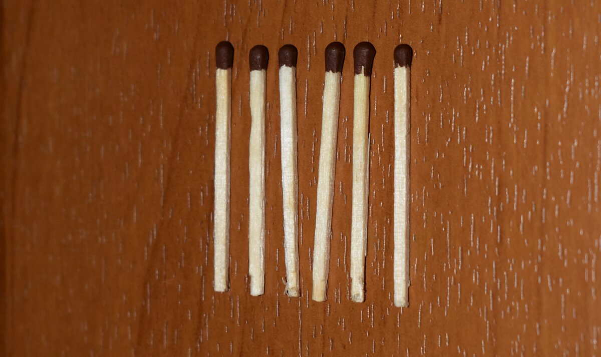 Учеными доказано, что головоломки, загадки, шарады и подобные игры развивают пространственное мышление. А это, на минуточку, позволяет лучше ориентироваться на местности и находить нужные улицы. Поэтому не проходите мимо и проведите время с пользой. А ещё, подключайте друзей к занимательной игре. Головоломка Сейчас я покажу вам занимательную головоломку. Скажу сразу, у неё есть маленький подвох. Поэтому при решении думайте о разных подходах и способах. Перед вами шесть спичек, расположенных параллельно друг другу. Правда, одна спичка немного наклонилась, но не суть. Нам нужно другое – правильно решить. Задание: расположите спички так, чтоб каждая из них касалась остальных пяти. Хорошенько подумайте и не торопитесь смотреть ответ. Ответ на головоломку Надеюсь, вы хорошо подумали прежде, чем листать дальше. В общем, ответ. Сначала берём три спички и кладём их треугольником. Каждая уголками касается двух других. Теперь нам нужно положите остальные три. Аналогично складываем оставшиеся с