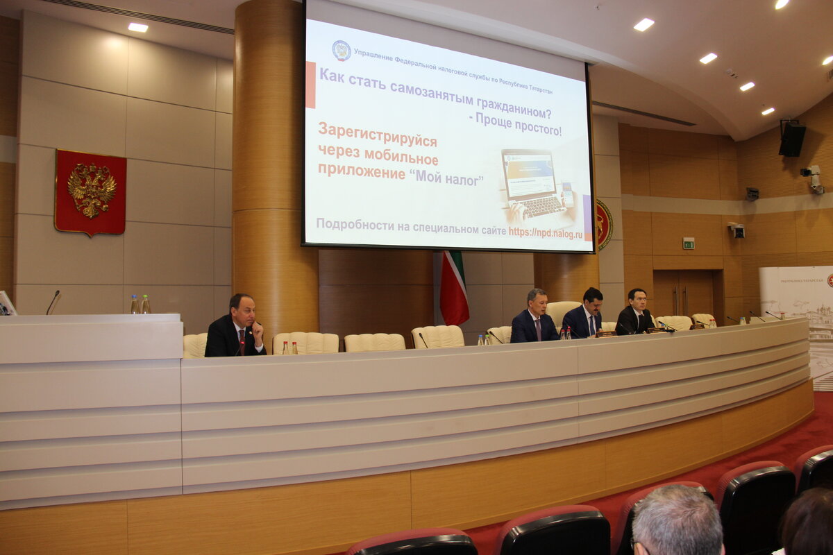 В Кабинете Министров Республики Татарстан прошел брифинг с участием руководителя Управления Федеральной налоговой службы по Республике Татарстан М.А. Сафиуллина, руководителя Аппарата Кабинета Министров Республики Татарстан Ш.Х. Гафарова, Уполномоченного при Президенте Республики Татарстан по защите прав предпринимателей Т.Д. Нагуманова и представителей СМИ Республики Татарстан. Республика Татарстан наряду с 3-мя регионами участвует в пилотном проекте по апробации нового налогового режима «Налог на профессиональный доход». Применение специального налогового режима является добровольным. Налог на профессиональный доход – это не новый налог, а новый специальный налоговый режим. Его могут применять физические лица, в том числе индивидуальные предприниматели, которые сами производят товары и услуги, у которых нет работодателя и наемных работников. Важно отметить, что годовой доход самозанятого не может превышать в год 2 млн. 400 тыс руб. «Сегодня уже более 8 тысяч жителей респ