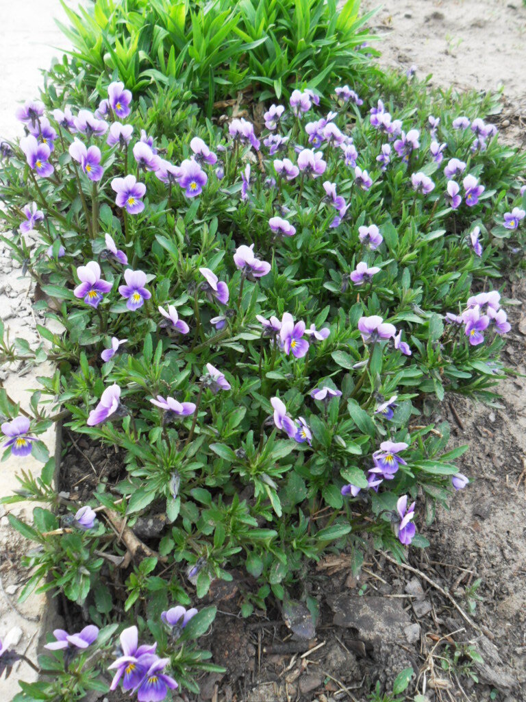 Кустики фиалки трехцветной украшают мой сад весной. Она начинает цвести, как только тает снег. Цветочки на своих длинненьких ножках выпрыгивают прямо из-под снега. Сочные и яркие они радуют своим цветением. Меня, пять лет назад, «угостили» несколькими маленькими кустиками этой фиалки. Все это время мы дружим с этой нежной, не прихотливой красавицей. Она освоила весь мой участок и даже «ушла» за забор к соседям. Размножается очень активно, вегетативно и семенами. Любит хороший полив и одинаково пышно кустится на солнышке и в тени. Цветет весь сезон и под снег уходит с цветами. Советую вам, если встретите ее на рынке или на даче у знакомых, то обязательно приобретите маленький кустик этой прелести. Фиалка не только радует своими цветами, но и обладает лекарственными свойствами. Из свежесорванной фиалки делают отвары, настои, компрессы и масло. Масло приготовить легко в домашних условия. В нем сохраняются все витамина и микроэлементы. Для изготовления масла берем 0,5