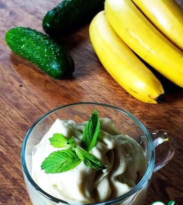 Ингредиенты для «Бананово-огуречного мороженого»: · Банан — 3 шт · Огурец — 1 шт Итак, для нашего мороженого нам понадобятся всего 3 банана и 1 огурец. Срезаем с огурца шкурку и удаляем с него семена ,очищаем наши бананы от кожуры. Далее нарезаем бананы и огурец на кружочки. Сложите все в одну миску и поместите на 3 часа в морозилку. Замороженные бананы и огурец мы измельчаем в блендере,и выкладываем мороженое в креманку . Вот наше быстрое и очень вкусное мороженое готово. Приятного аппетита!