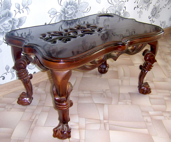 Шикарный резной столик своими руками Ход работы: Стол и резные ноги делал первый раз, купил мебельный щит.