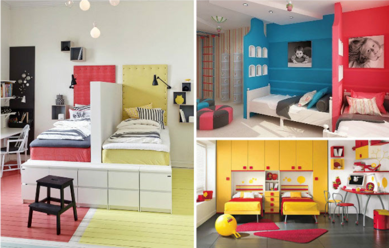 Не всегда бюджет родителей 2х детей позволяет каждому выделить комнату. Однако это не значит, что дети должны жить в неудобной комнате в ограниченном пространстве. Мы делимся коллекцией интерьеров, доказывая, что детская комната на двоих может быть функциональной и красивой. 1. Общий стеллаж, отдельные кровати. Хотя кровати находятся на небольшом расстоянии друг от друга, дети будут чувствовать себя в них комфортно. Каждая кровать находится в небольшой нише и они разделены между собой небольшим стеллажом и парой стульев. 2. Функциональный подиум для «невидимых кроватей». Идеальным решением для маленькой комнаты является постройка низкого подиума, который может вместить две односпальные кровати в дневное время. Внешняя поверхность подиума предназначена для размещения легких рабочих и игровых площадок, которые наверняка оценят дети. 3. Кровать и система хранения. Такие двухъярусные кровати могут с комфортом разместить двух детей. Они не будут мешать друг другу, благодаря правильному расп