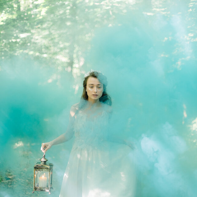 Но с точки зрения фотографа цвет тиффани очень коварный. Что может произойти если всё везде будет цвета тиффани? Можно получить нежелательные рефлексы на лицах - проще говоря, кожа станет цвета тиффани. Это не очень приятный момент для фотографа и клиента, ведь невозможно отретушировать каждый кадр со свадебной съемки. Поэтому нельзя допускать перебора, лучше добавить тиффани в виде акцентов, отдельных аксессуаров. Сам оттенок выбирать не слишком насыщенный, чуть бледнее, чем оригинальный цвет. А скатерти, пол, стены и потолок стоит оставить в более нейтральном цвете.