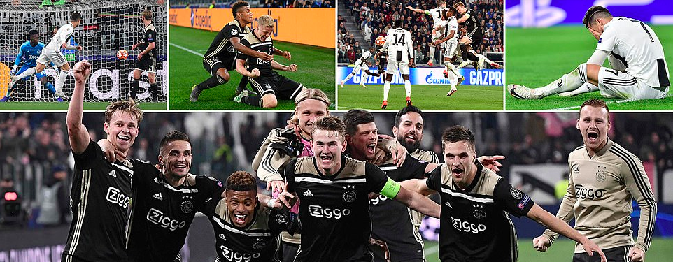 Голландский "Аякс" бросили вызов "Ювентусу" в Лиги чемпионов и у них это получилось! К ответному матчу в четвертьфинале ЛЧ команды подошли со счетом 1:1. А сегодня "Аякс" выиграл в Турине со счетом 2:1. "Ювентус" хорошо стартовал, когда Криштиану Роналду направил мяч головой в ворота Андре Онаны, после исполнения углового удара, в первые полчаса игры. Но голландцев это не сломило. "Аякс" быстро отыгрался, когда полузащитник Донни ван де Бик спокойно отправил мяч в сетку ворот Войцеха Щенсны, произошло это на 34 минуте. Маттис де Лигт поставил точку в этом матче. После подаче углового, капитан команды выиграл борьбу у двух игроков "старой синьоры" и пронзил ворота соперника ударом головой. "Аякс" теперь сыграет с победителем пары "Манчестер Сити" - "Тоттенхэм", он определится уже в эту среду, первый матч закончился в пользу клуба из Лондона (1:0).