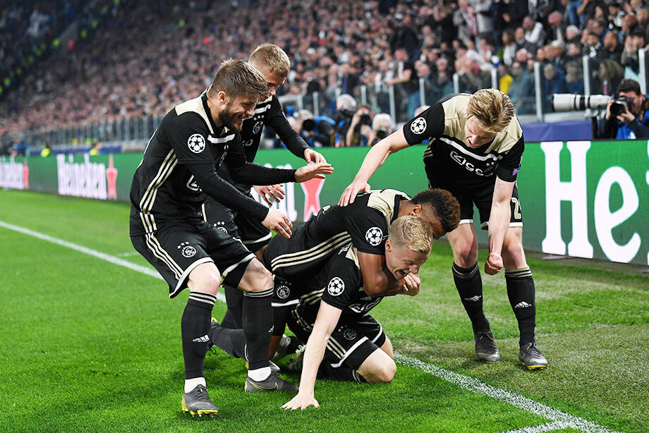 Три года Аякс не мог "перешагнуть" 3-й этап Лиги Чемпионов, а вчера ночью вышел в 1/2 финала-сказка. До этого времени ни одна команда, прошедшая три раунда квалификации, не добиралась до таких вершин. Ни одного поражения на групповом этапе, победа над Реалом в гостях и вот теперь повержен Ювентус с Криштиану. Аякс-наглость. Аякс доминировал в обоих матчах. Больше бил в створ,больше владел мячом и больше создавал моментов. 15,9 ударов по воротам в среднем - больше только у "Сити" и Барселоны. А игра пятками-это вообще лирика из 90-х.Можно приводить много цифр (успешные отборы 11,3 за матч,155 голов во всех турнирах в этом сезоне и т.д.), но Аякс победил за счет своего задора и смелости. Аякс-молодость. Капитану Маттейсу де Лигту 19 лет. Центральный защитник сделал решающий шаг в Турине. Он самый молодой капитан в истории плей-офф Лиги Чемпионов, самый молодой капитан в истории Аякса. Несмотря на то, что Роналду гениально обыграл его в первом тайме и забил гол, де Лигт ответил максимальн