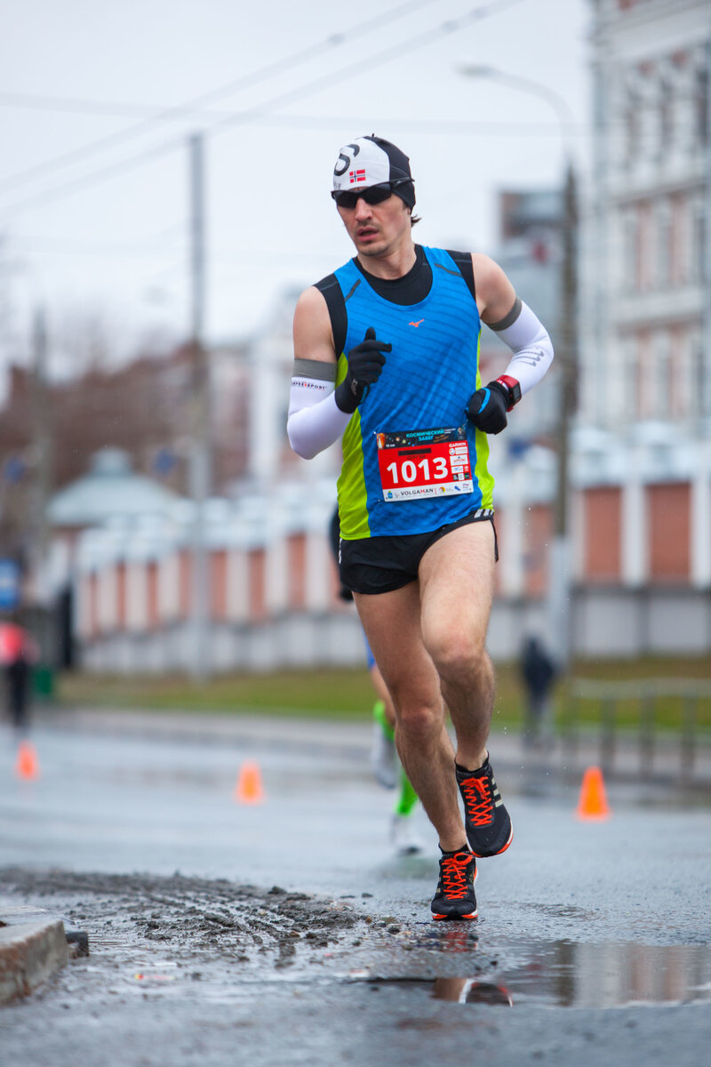 Подъем в 7 утра, и все ради завтрака. Старт только в 11 часов, так что легкий перекус - и дальше спать. Пара часов в полудреме и уже пора собираться. Быстрый сбор, и выхожу на разминку. На улице дождь, кроссовки промокают моментально. Легкая разминка, немного СБУ, бегом раздеваться на парковку в машине - и к месту старта. Толпа образовалась уже не шуточная, и пройти к первым рядам через всех не получится. Недолго думая, чуть двигаю ограждение и просачиваюсь в первый ряд. Буквально несколько минут и нас начинают двигать к стартовым воротам. Все очень быстро происходит, отсчет и дают СТАРТ...