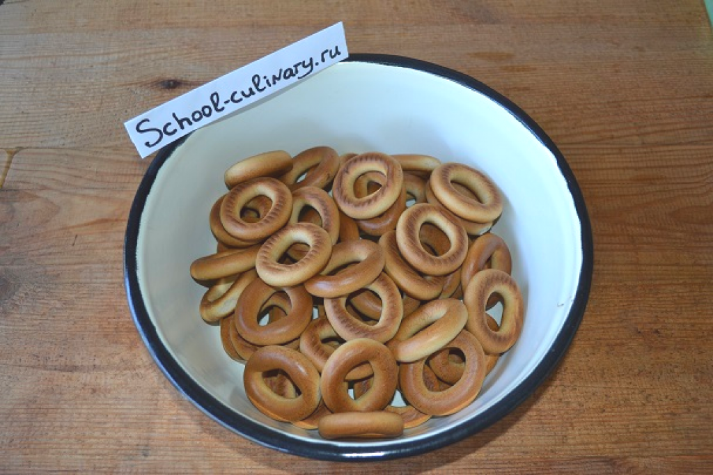 Бублики обсушите и выложите в жаропрочную форму, застеленную пергаментом.