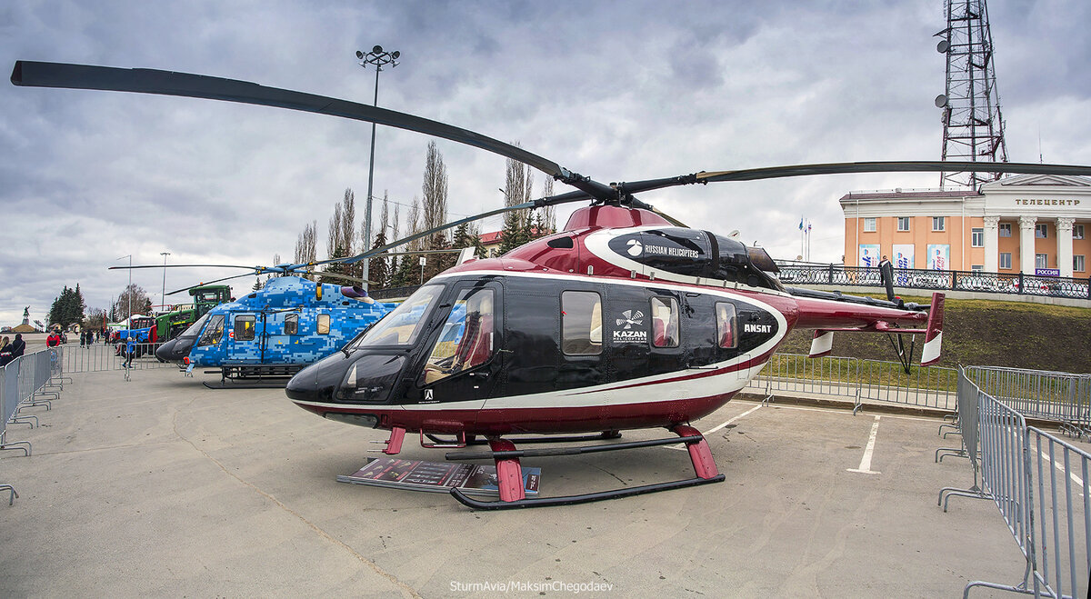 К этому мероприятию Казанский Вертолетный Завод на открытую экспозицию рядом с Конгресс Холлом привез два вертолета "Ансат". «Ансат» — российский лёгкий многоцелевой вертолёт на 7—9 мест, может перевозить 1300 килограммов полезной нагрузки в кабине. Разработан конструкторским бюро Казанского вертолётного завода ПАО «Казанский вертолётный завод» Машина может быть использована для решения широкого круга задач: доставка грузов, перевозка пассажиров, проведение поисково-спасательных операций, патрулирование, оказание экстренной медицинской помощи, административные перевозки, первоначальное обучение. «Ансат» оснащается двумя турбовальными двигателями PW 207K мощностью 630 л.с. компании Pratt & Whitney Canada c электронно-цифровой системой управления двигателем (FADEC), обеспечивающими продолжение взлета при одном отказавшем двигателе. Пилотажно-навигационный комплекс и бортовое оборудование