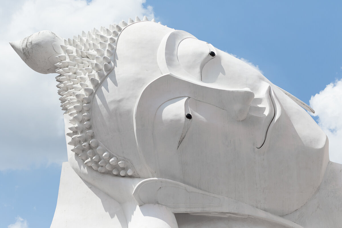 Лицо - спокойное, взгляд направлен прямо, губы сомкнуты и расслаблены