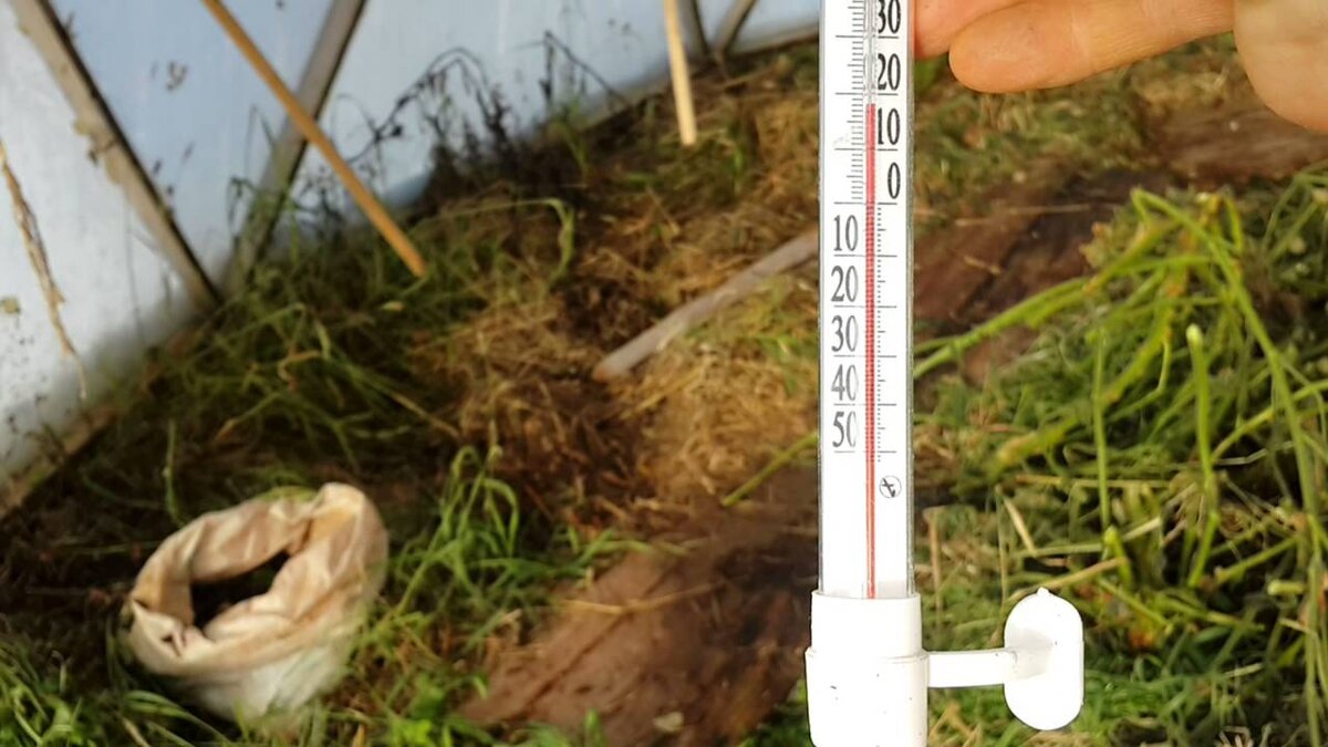 Подумал я, как повысить температуру в теплице... У нас даже днем, вот зашел циклон очень холодный - плюс 8 на улице, а в теплице температура резко начала падать, я прекрасно знаю, что плюс 13 - это уже критическая температура для томатов, ну а баклажаны и перцы и подавно, поэтому сейчас начинаю перед тем как закрыть их на ночь, я днем буду прогревать, для этого на плитке между кирпичами устанавливаю свечечки, для безопасности устанавливаю их на кирпичи. Еще один вариант, металлическая коробка, там снова тоже кирпичик, здесь 2 свечки сразу работают и согревают воздух, ну а тем временем готовлю дополнительное укрытие для свеч для безопасности. Благодаря свечкам мне удалось в течение получаса поднять температуру, но уже вечер и я сейчас буду строить теплицу в теплице, у меня в теплице стеллаж с досками, очень хорошие, как раз основание для строительства еще одной теплице, но сейчас на нее буду накладывать многими слоями старый агроволокно, и она в несколько слоев очень хорошо держит тепл