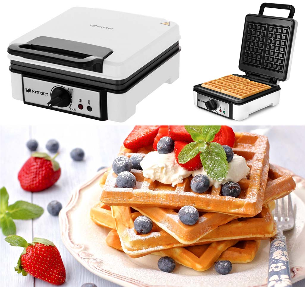 Как приятно утром съесть на завтрак свежеиспеченные пористые вафли с вкусной творожно-ягодной начинкой, кусочками бекона и сыра или свежим медом! Быстро приготовить толстые вафли для всей семьи вам поможет электрическая вафельница Kitfort KT-1646 — верный помощник на кухне. Она компактна, проста в обращении и равномерно пропекает тесто. Разберем подробно, чем она хороша и как ей пользоваться.