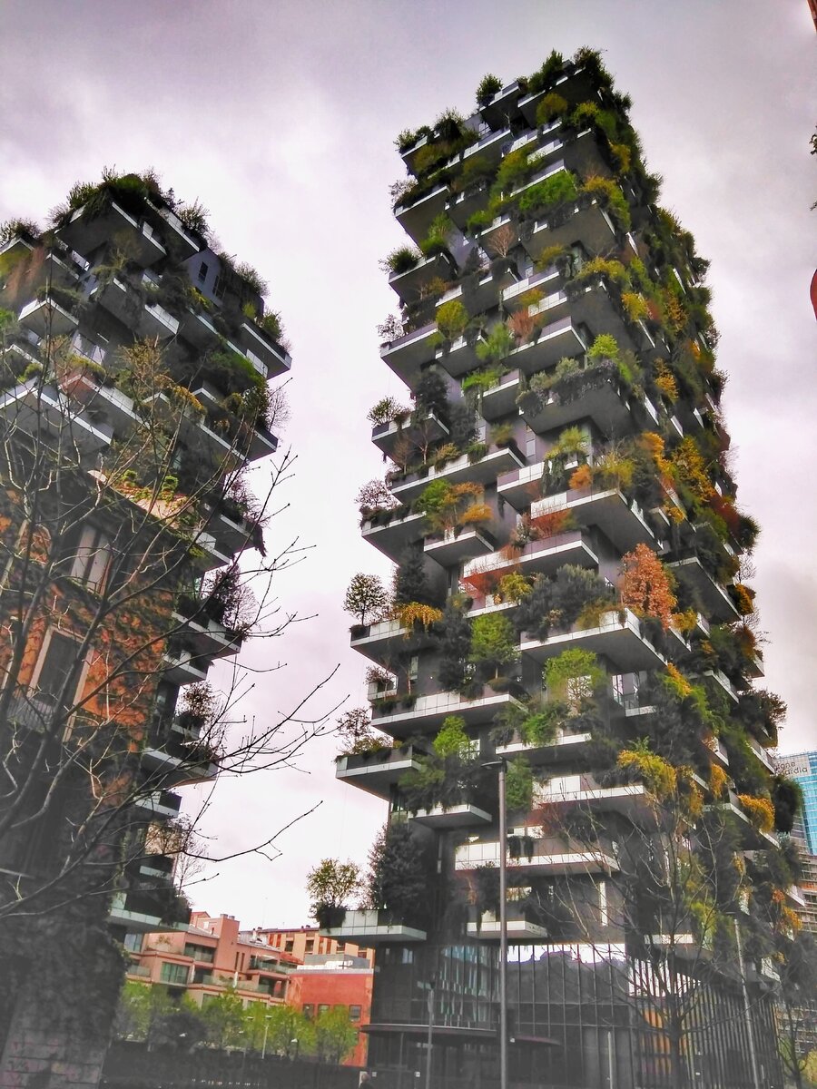 Bosco Verticale - это уникальный и новаторский проект 2х жилых домов в центре Милана имеющую особую ярусную структуру и собственную экосистему. Это самый настоящий лес, состоящий из почти 900 деревьев, 5 тысяч кустарников и более 10 тысяч многолетних зеленых насаждений, цветов и трав.