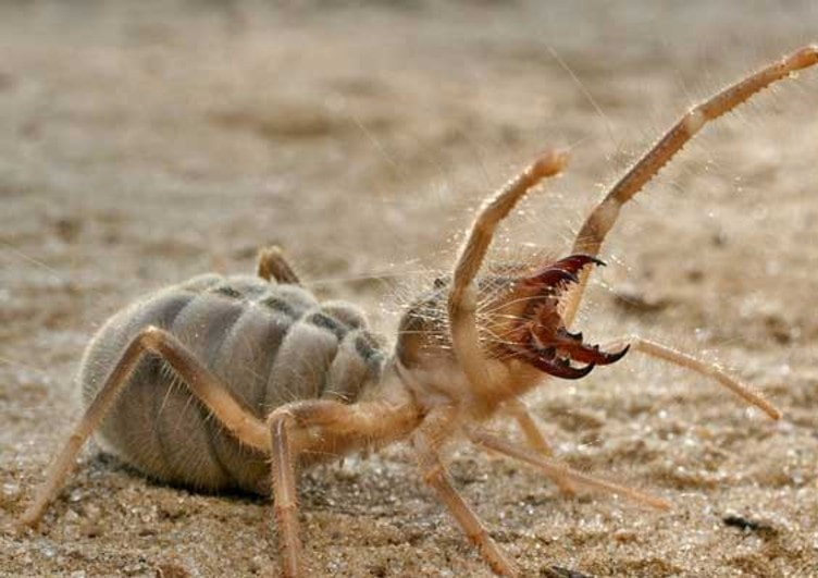 Животный мир нашей планеты настолько разнообразен, что я и представить себе не мог существование гибрида скорпиона и паука! Такое существо нашел возле своего дома строитель Томас Акоста в Фениксе, штат Аризона. Оно выглядело очень угрожающе и было одновременно похоже на обычного паука, и на скорпиона из жаркой африканской пустыни. Это оказался Верблюжий паук, или известный как сольпуга. Существо классифицируется как паукообразное, но отличается большой челюстью с мощными клешнями, которые делают из него подобие скорпиона. У этого паука самое большое соотношение челюсти к телу среди извесных животных. Такому пальчик в рот лучше не совать, когда он зевает :D Благодаря своей огромной челюсти, паук-верблюд может вырасти достаточно большим, чтобы питаться мелкими ящерицами, грызунами и даже птицами! Но, к счастью моих маленьких арахнофобов, хоть эта милашка и выглядит страшным, но он не является ядовитым. Так что если вы когда-нибудь встретите такого, то он вам не сможет повредить, а вот ва