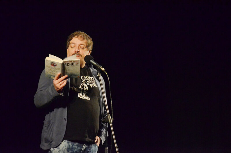 Состоялся творческий вечер Дмитрия Быкова, организованный театром «Малый» и Бюро приключений «53 тура». Приветствуя зрителей, поэт, писатель и журналист рассказал, что в 16 лет первая в жизни командировка привела его в Новгородскую область, когда в Боровичах сошёл с рельсов поезд. Есть у Быкова и стихотворение про Великий Новгород, по его словам, чрезвычайно мрачное. Но в этот вечер поэт не стал читать про Новгород, а обратился к своим ранним произведениям, объяснив это стремлением подвести некоторые итоги на фоне не так давно встреченного 50-летия, а также отметив почтенный возраст публики, собравшейся в «Малом». В ответ из зала прилетела записка: «Почитайте что-нибудь драйвовое для нас, молодых». Новгородцы услышали лирические и иронические стихотворения, в том числе и несколько новых, ранее не публиковавшихся. Зрители активно передавали писателю записки, а кто-то даже подготовился заранее и распечатал несколько вопросов на принтере. Новгородцы интересовались, какое произведение