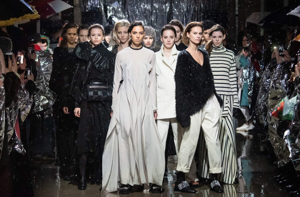 В Москве прошел показ бренда Yulia Nikolaeva. Гости собрались во дворе дизайн-отеля «Рихтер», а погода добавила зрелищности (нам раздали космические одеяла, и со стороны было похоже на модную секту): модели легко двигались по лужам, по бокам стояли уличные обогреватели, полыхающие пламенем, а пар от дыхания девушек создавал особый антураж, под снегом с дождем все вещи коллекции осень-зима 2019-2020 выглядели еще эффектней. Рассказываю, что именно достойно Вашего внимания. Юлия Николаева, главный минималист российской индустрии моды, показала вещи вне времени: в коллекции умело сплелись спортивные элементы, классика и авангард. Монохромные образы выглядели свежо, строго, но при этом романтично, их грамотно разбавили принты в клетку, полоску и цветочек. Аксессуары в новой коллекции максимально практичны: теплые балаклавы и шапки из искусственного меха (сильно напоминающие шевелюру и плащ Джона Сноу, простите за ассоциации), поясные сумки в виде шахматных досок и более яркие, выложенные