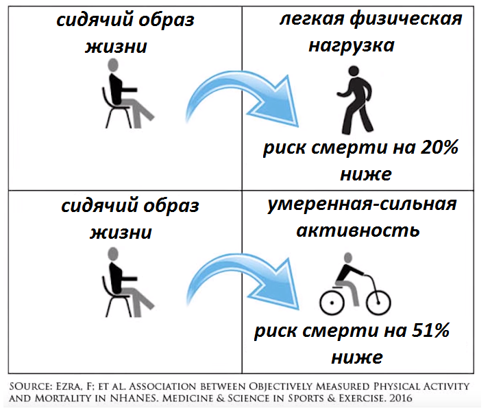 1. Спорт и регулярная физическая активность. Слышали о таком термине как гиподинамия? Это хроническая малоподвижность, которая может привести к жутким последствиям. Большое количество исследований подтверждает пользу физической активности для здоровья. Сидячий образ жизни и хроническая малоподвижность являются ключевыми факторами которые приводят к потери мышечной массы и физических показателей, что может привести к нарушению работы опорно-двигательной системы, а также повышается риск смертности. При отсутствии физической нагрузки по любой причине, мы сами копаем себе яму на тот свет. Без правильной активности повышается риск возникновения неинфекционных заболеваний, а это всем известные заболевания сердца, рак, диабет. Во всем мире большинство людей по научным данным недостаточно активны, но риск смертности разительно уменьшается при каких-то 150 минутах умеренной физической нагрузки в НЕДЕЛЮ, или же 75 минутах интенсивной тренировки, повторюсь в НЕДЕЛЮ! 2. Достаточное потребление в
