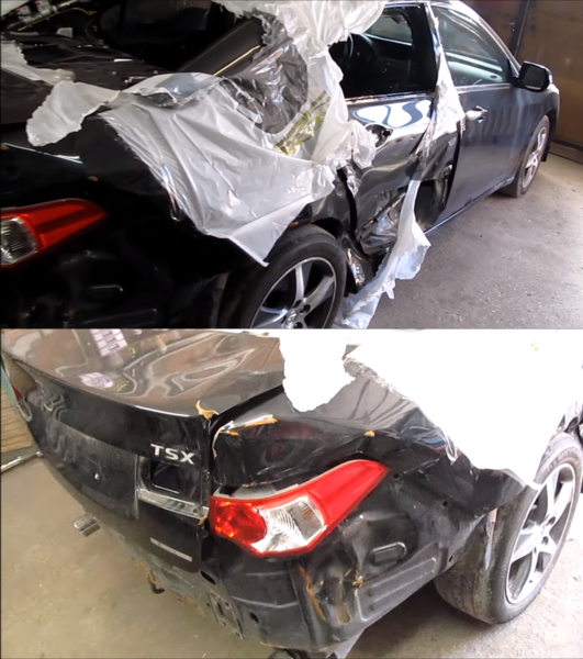 Каждый из нас хочет купить хороший автомобиль, но не каждый может увидеть, что находится под красивой оберткой. В данной статье, Honda Acura битая в правую заднюю часть. Под замену будет крыло и дверь, а остальные детали будут ремонтироваться: крышка багажника и задняя колёсная арка. Сначала вытягивается задняя колесная арка. После ее вытяжки снимается крыло. Чтобы снять крыло вырезается кусок железа под крышкой багажника, для того, чтоб добраться до сварочных точек и высверлить их. Также режется крыло в основании заднего порога и стойки. После этих манипуляций снимается битое крыло и устанавливается новое, после чего фиксируется саморезами для сварки. Далее ремонтируется крышка багажника. Подгоняются зазоры и выравнивается споттером. Все неровности шпаклюются и автомобиль отправляется в покрасочный бокс. После покрасочной, автомобиль полируется до блеска и отправляется на вторичный рынок где будет ждать своего счастливого обладателя. Будьте внимательны друзья при выборе нового автомоб