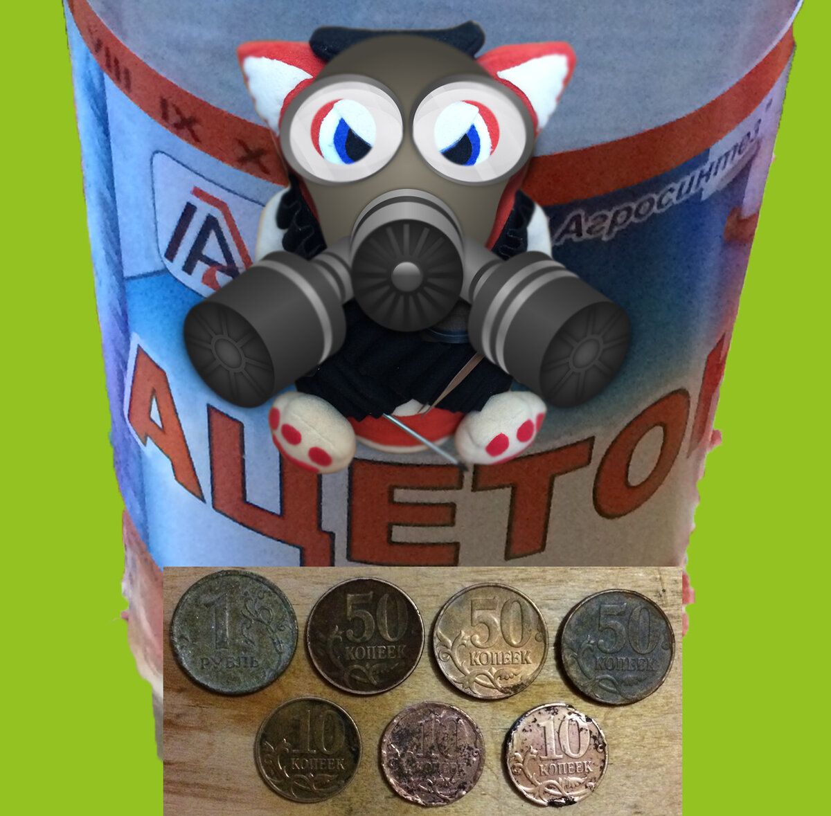 Здравствуйте дорогие друзья единомышленники, подписчики и гости канала! Сегодня решили провести подобный показательный эксперимент, чтобы выяснить: - Как повлияет ацетон на грязные монеты? Под грязью мы подразумеваем органические загрязнения и сильное окисление. Будет полезным так-же увидеть, как реагирует ацетон с монетами из разных типов металла. Признаться, подобный эксперимент не очень желателен, так как ацетон имеет сильный запах, к тому же не безопасен (к сожалению ацетон гораздо быстрее поступает в ингаляционном состоянии, чем выводится из организма - поэтому такие опыты лучше проводить в хорошо проветриваемом помещении), но выяснить это взаимодействие для полноты картины процесса очистки монет совершенно необходимо. АЦЕТОН -органическое вещество, простейший представитель насыщенных кетонов. Своё название получил от лат. acetum — уксус. Хорошо растворяет органические вещества, а так-же ряд солей. Удивительное совпадение! При агрессивном способе очистки монет очень успешно примен