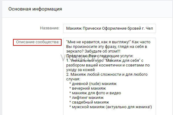 Продвижение продукта в социальной сети невозможно без грамотного ведения группы или паблика, а одним из ключевых элементов здесь является описание сообщества ВКонтакте. Примеры таких описаний в избытке представлены в Интернете, но найти среди них по-настоящему правильные и работающие — работа не из легких. Внимание! Если сообщество носит некоммерческий характер, то его описание может быть каким угодно. Основное требование — более или менее точная передача тематики и целей. Однако в случае с коммерческими пабликами, описание должно быть максимально выверенными и соответствующими множеству параметров. Как написать описание группы или паблика ВК Советы для составления работающего описания Описание сообщества ВКонтакте должно быть ёмким и лаконичным.