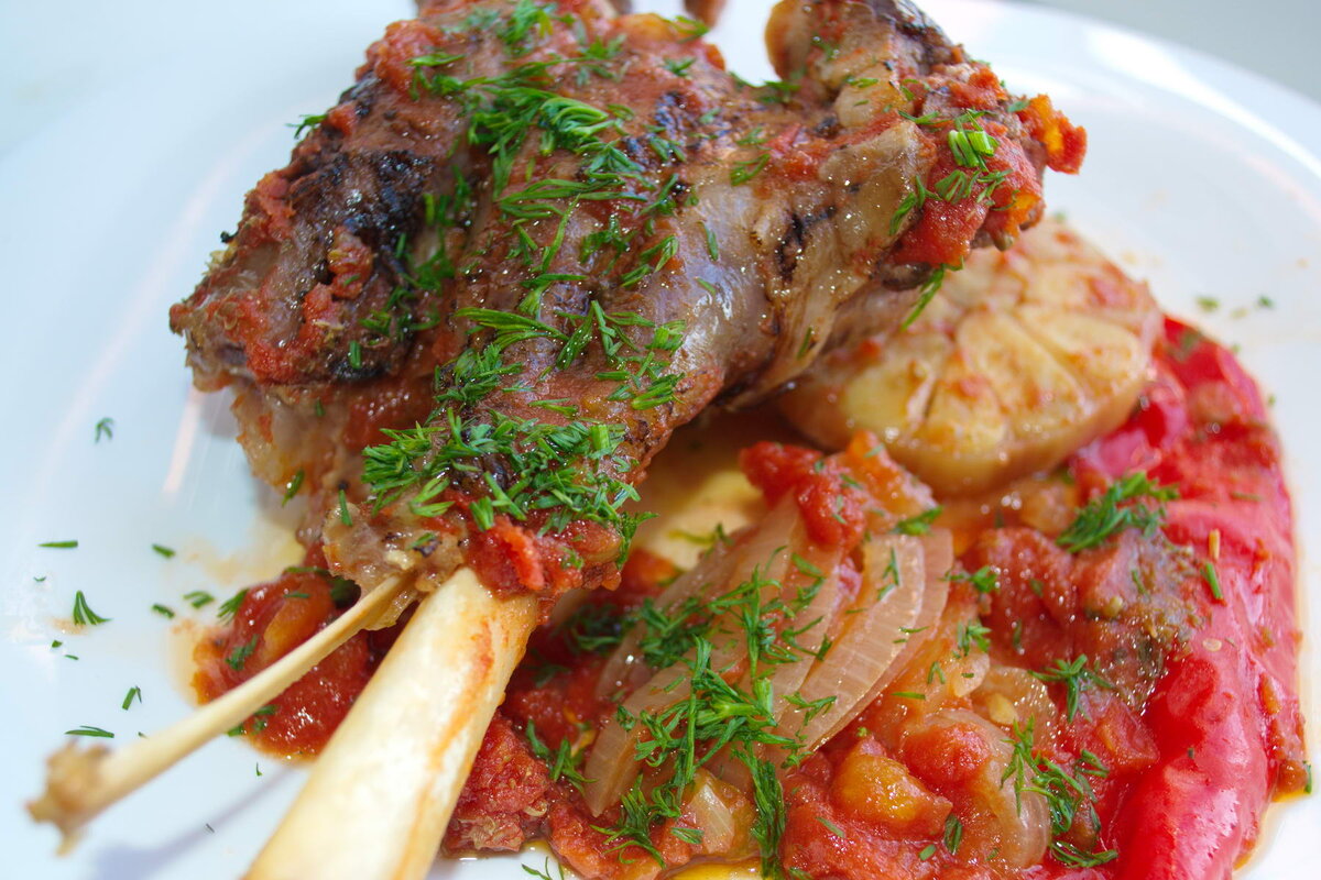 Баранья голень в духовке с томатами: Мясо отваливается от кости