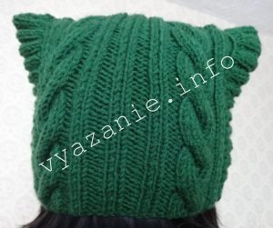 Котошапка сейчас в тренде. Её носят все. Тёплая, уютная, игривая! Вяжется котошапка, или шапка - кошка, просто. Вязать будем спицами. Рисунок: резинка *2 лицевые, 2 изнаночные* и две косы из 6 петель, перехлест в 5 ряду. Вяжем прямоугольник с рисунком и привязываем к нему еще два прямоугольника, связанные резинкой *2 лицевые, 2 изнаночные*. Сшиваем эти три прямоугольника между собой в виде котика. Сокращения: ЛС - лицевая сторона ИС - изнаночная сторона Описание Набираем 34 петли для рисунка +2 кромочные.
