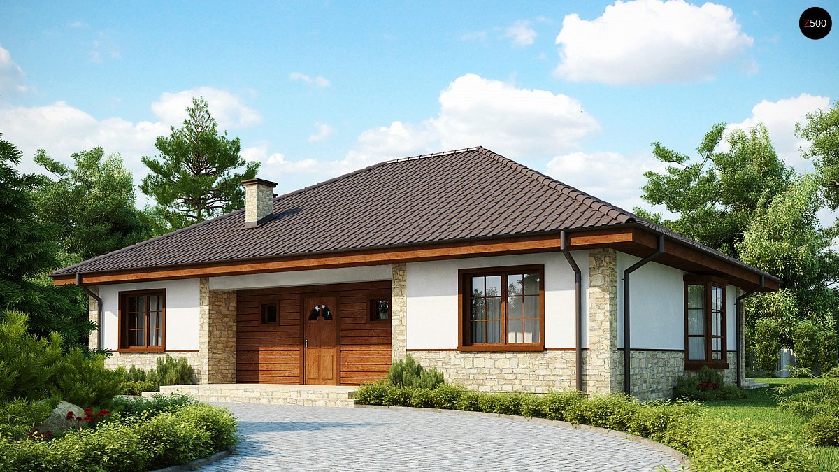 Проект Z10 создавался для людей, которые ценят лаконичность и простоту оформления жилого пространства. Благодаря удобной планировке, рациональному использованию площади и отсутствию второго этажа, возведение постройки обходится дешевле других аналогичных проектов частных домов.Желающие иметь дополнительные комнаты, могут оформить их за счет полезной площади чердака. Там может быть кабинет или детская. Пространство дома разделено на спальную и гостиную зоны, есть крытая терраса, оборудованная камином. Она также может использоваться как добавочная жилая площадь.Пространство кухни и столовой можно объединить. Этот прием поможет визуально увеличить пространство, внесен изюминку в интерьер. Любую хозяйку порадует и наличие комнат, которые просто необходимы в хозяйстве — две больших кладовых. Кроме того, в планировке предусмотрены два санузла один из которых совмещен с ванной. Готовый проект небольшого одноэтажного дома Z10 - отличное решение для небольшой семьи Подробнее по ссылке: http