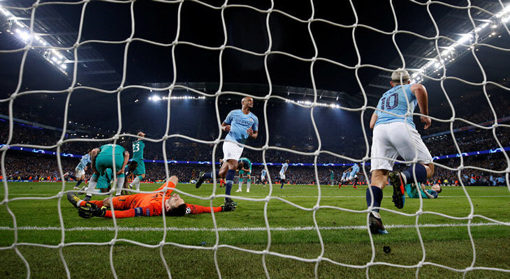93-я минута, счет 4-3 в пользу "Сити", но этого недостаточно для выхода в 1/2 финала Лиги Чемпионов. Эриксен ошибается при передаче назад, Агуэро подхватывает мяч, катит на Стерлинга и тот забивает спасительный гол 5-3. Рахим Стерлинг оформляет хет-трик. Он герой вечера. Тоттенхэм обречен. Стадион неистово празднует. Пеп Гвардиола зависает в воздухе от радости. Но Чакыру по внутренней связи подсказывают помощники о том, что Кун Агуэро был в офсайде. Смотреть на Гвардиолу без слез невозможно. Почеттино понимает, что его команда идет дальше. Лондонцы выстояли!