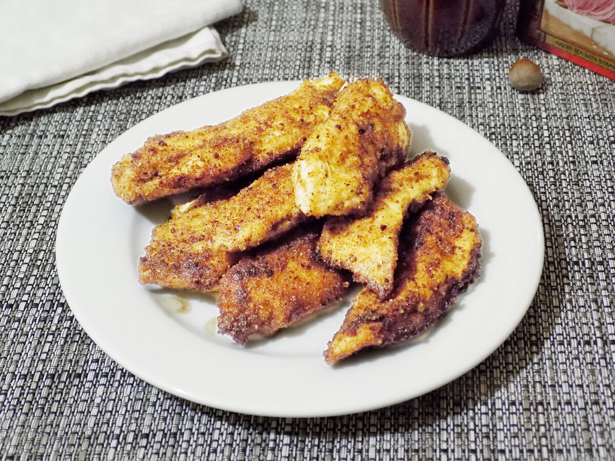 - Мясо потребует некоторого предварительного приготовления. Наше филе тщательно проверяем на наличие косточек или их обломков. Мясо моем. Затем его можно просушить бумажным полотенцем (салфетками) или оставить на несколько минут, чтобы стекла вода. Нарезаем каждый кусочек на тонкие ломтики. Затем каждый из них нарезаем на длинные полосочки. - Сырые яйца необходимо немного взбить. Для этого помещаем их в глубокую пиалу. Венчиком доводим массу до однородности. - Каждую полоску из куриного мяса окунаем в яичную массу. Следим, чтоб