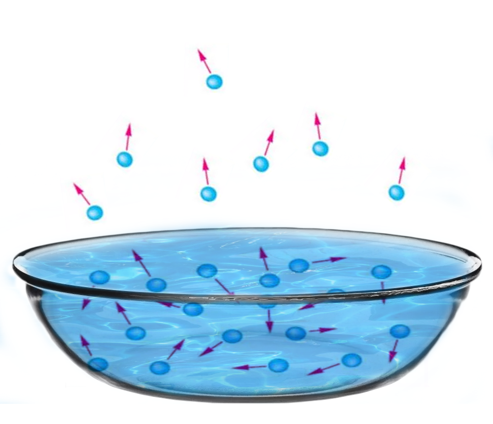 Жидкость состоит из молекул, которые постоянно находятся в движении. Эти молекулы обладают кинетической энергией, которая позволяет им преодолевать межмолекулярное притяжение. Они упорно разгоняются и вылетают на поверхность, беспорядочно витая в воздухе. Если вы накроете чашку с супом тарелкой, то через какое-то время, сняв её, обнаружите, что пытавшиеся сбежать молекулы воды столкнулись об эту тарелку и остались на ней.
