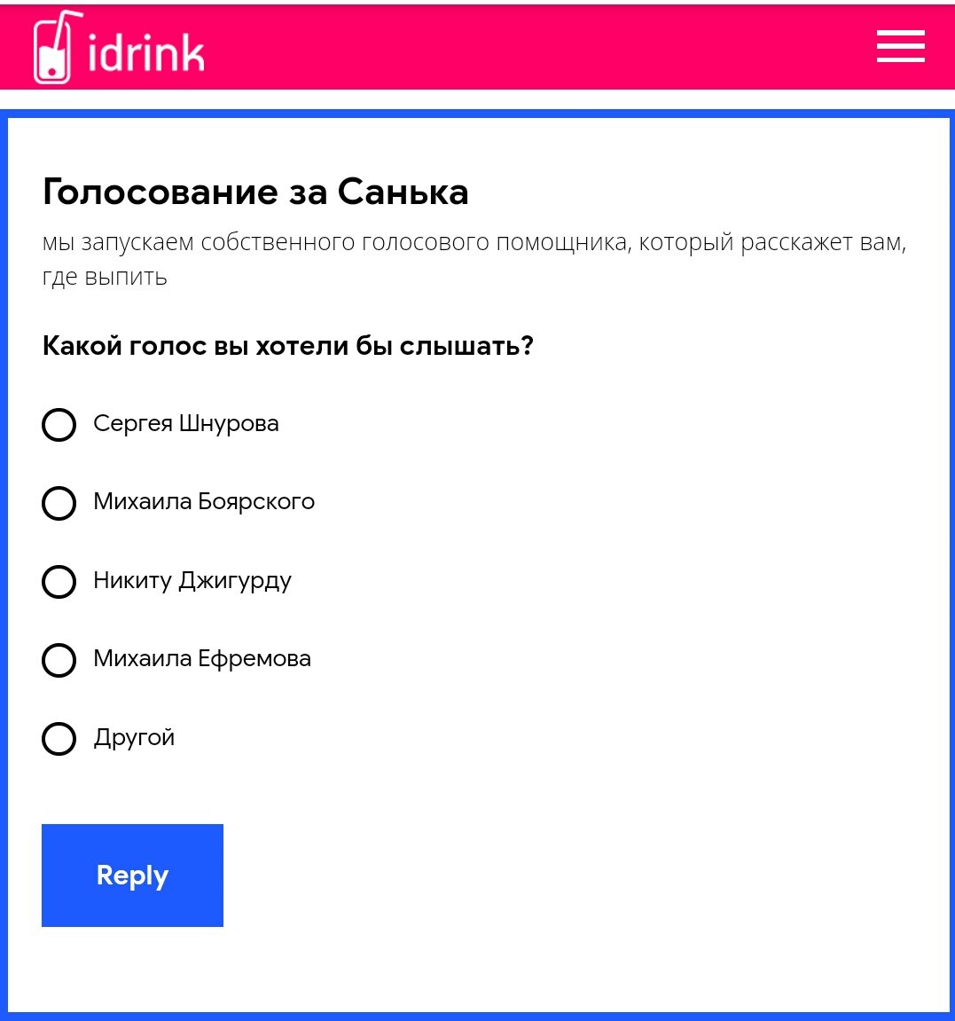 Компания iDrink разработала новый голосовой помощник. И это не тот же самый Сири или Алиса, "Санек" всегда поможет узнать где поблизости можно купить горячительный напиток или посидеть в баре. Сейчас на сайте производителя идет голосование, чьим голосом будет говорить "Санек": Все что нужно - это сказать " Санек, вино" и он найдет ближайший винный магазин. И кто знает, может "Санек" в будущем заменит и друга с которым захочется поговорить по душам, когда пропустишь пару рюмок. Используя данные местоположения и историю предыдущих запросов, "Санек" будет предлагать напитки и заведения исходя из ваших предпочтений. Помощник будет доступен на Android и iOS. Возможно уже скоро нам можно будет испытать на практике работу виртуального друга, и даже что то обсудить с ним. Ждём с нетерпением. Спасибо за внимание. Ещё больше интересных статей на канале - Жить хорошо!