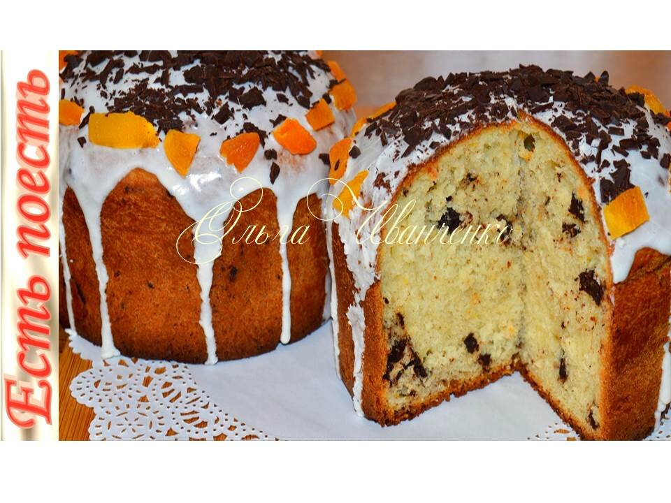 Кулич с ярко выраженным апельсиновым вкусом и кусочками шоколада. Можно добавить в тесто апельсиновые цукаты и апельсиновый ликёр. Очень нежный и мягкий. Шоколад лучше брать с большим содержанием какао. Ингредиенты: 150 мл молока, 100 г сахара, 20 г свежих дрожжей (или 7 г сухих), 2 яйца, 80 г сливочного масла, 1 плитка шоколада, апельсин, ванилин, 350-400 г муки. Раскрошу свежие дрожжи, добавлю 1-2 ч. л сахара из общего количества, немного теплого молока, примерно 36-38 градусов и 2 ст.л с горкой муки, тоже от общего количества, и хорошо размешаю. Накрою и отправлю в теплое место примерно на 25-30 мин. С половины апельсина на терке сниму цедру и выжму сок. 50 мл сока понадобится для теста, а около 2 ст.л для глазури. Размешаю яйца, сахар, ванильный сахар, соль. Затем, положу масло комнатной температуры и разотру венчиком. Добавлю цедру, оставшееся молоко, 50 мл сока, размешаю и положу дрожжи, размешаю. Подсыпая муку, замешу лопаткой тесто. Оно должно быть липким и вязким. Накрою