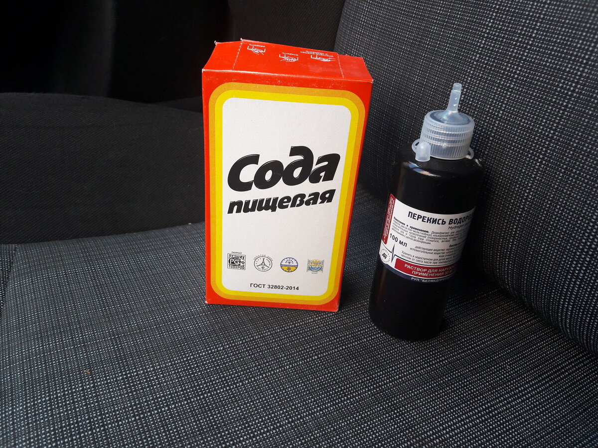 В одной из прошлых статей я рассказывал, как обычный глицерин заменил дорогую автокосметику для панелей Очередь дошла до автомобильных кресел. Хоть салон моего автомобиля нельзя назвать грязным, но я решил сравнить, можно ли еще чище. Рецепт: Вода — 300 грамм, перекись водорода — 100 грамм, 3 чайные ложки соды. Все смешиваем, выливаем в бутылку, одеваем сверху распылитель и хорошо встряхиваем. Распыляем равномерно по автокреслам. На загрязненные участки, можно прыснуть больше, но главное не перестараться, особенно если материал черного цвета. Старайтесь не попадать на панели, потом плохо оттирается. После распыления я выждал 15 минут и хорошо протер все кресла мокрой тряпкой. Когда все высохло, снова сделал фото. Что из этого вышло, представляю вашему вниманию: Результат: хоть салон автомобиля не был сильно загрязнен, обработка перекисью с содой удалила старые, ранее не отмываемые пятна. На всю работу я потратил не более 30 минут времени. Если вам интересно — подписывайтесь на кан